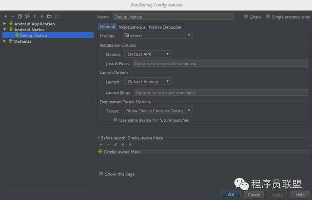 10. 給新建的Android Native Configuration一個名字,比如叫 Debug_Native