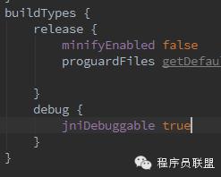 3. 激活Native代碼的調試(不激活的話,之後會出現錯誤 Error: Build type isn's JNI debuggable):在你的項目的子module的build.gradle文件中的buildTypes 區塊中添加 debug { jniDebuggable true }