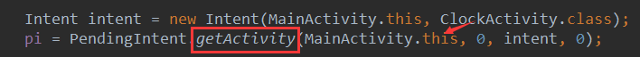pi = PendingIntent.getActivity(MainActivity.this, 0, intent, 0);
