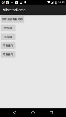 嗯,說回本節介紹的Vibrator,其實就是Android給我們提供的用於機身震動的一個服務! 比如前面我們的Notification中可以設置震動,當收到推送消息的時候我們可以設置震動 提醒,游戲必備,比如"打飛機"的游戲,當你的飛機給人打爆的時候,會長震動!