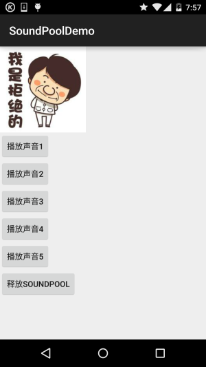 代碼非常簡單,另外如果你點擊了最後一個按鈕的話,SoundPool就會被釋放,然後再其他按鈕 就不會Duang了哦~
