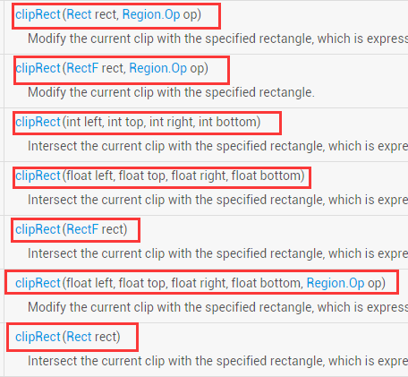 clipRect提供了七個重載方法:
