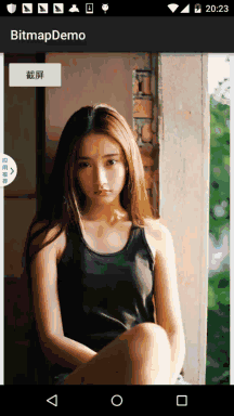Bitmap bitmap1 = BitmapFactory.decodeResource(getResources(), R.mipmap.pic_meizi); Bitmap bitmap2 = Bitmap.createBitmap(bitmap1,100,100,200,200); img_bg = (ImageView) findViewById(R.id.img_bg); img_bg.setImageBitmap(bitmap2);