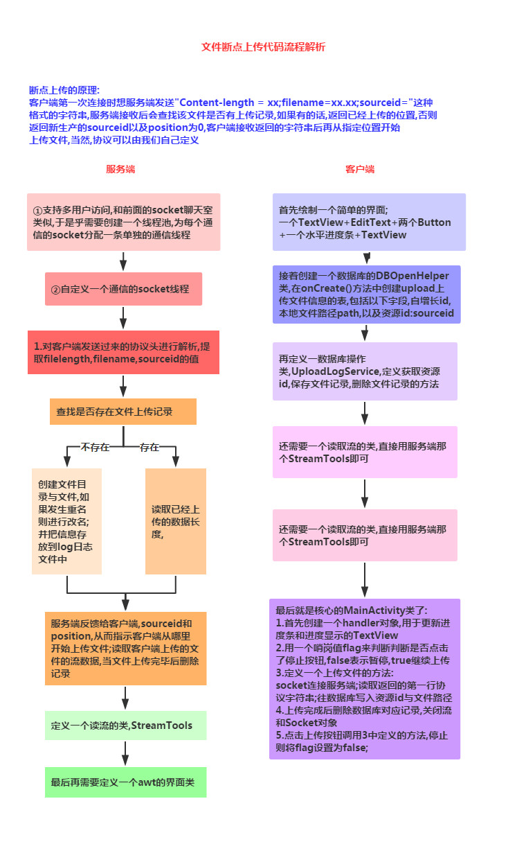 上節中我們給大家接觸了Socket的一些基本概念以及使用方法,然後寫了一個小豬簡易聊天室的 Demo,相信大家對Socket有了初步的掌握,本節我們來學習下使用Socket來實現大文件的斷點續傳! 這裡講解的是別人寫好的一個Socket上傳大文件的例子,不要求我們自己可以寫出來,需要的時候會用 就好!
