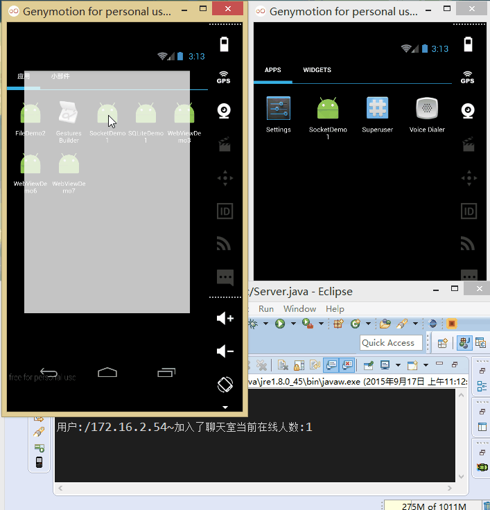 接著把我們的程序分別跑到兩台模擬器上: