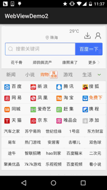 webView.loadUrl("http://www.baidu.com/"); //調用loadUrl方法為WebView加入鏈接