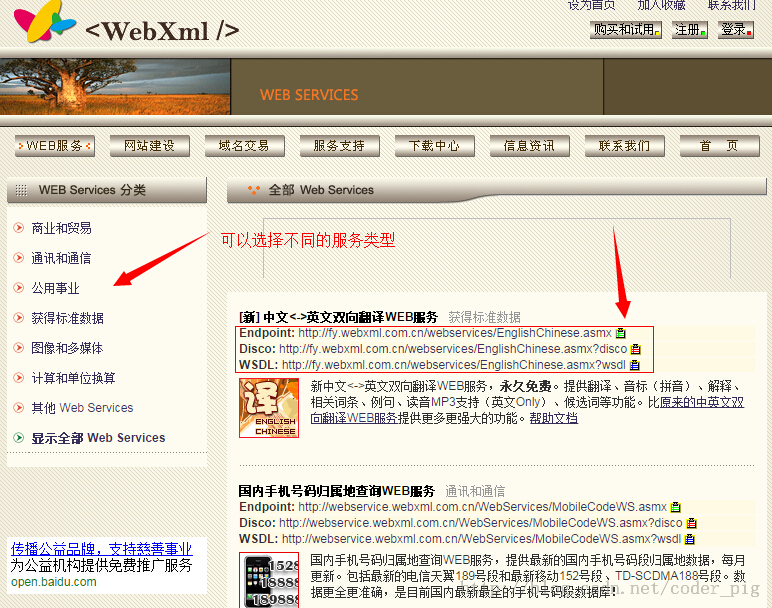網上有很多提供WebService的站點,首先找到這些站點,然後獲取相應的服務即可! 這裡選取WebXml和雲聚36wu作為例子給大家講解下,他們的官網: