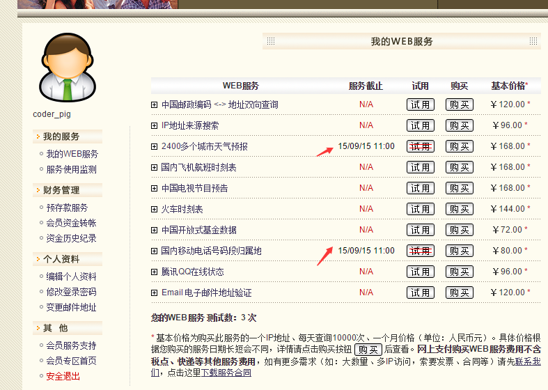 以前是免費的,不過都商業化了,很多服務都要收費,但是可以試用~ 改站點上提供了16個不同的Web服務,可以根據自己的需求,查詢相應服務,調用不同的接口!
