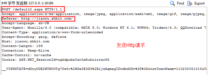 對於上面的流程如果還不清晰,我們可以使用HttpWatch或者firefox抓下包: PS:測試網站是小豬的學校的教務系統,輸入賬號密碼後請求登陸,我們可以看到下述信息: