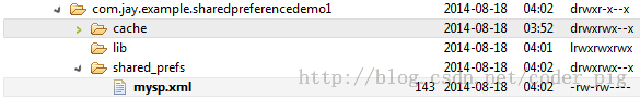 另外保存後,我們可以在File Expoler打開data/data/<包名>可以看到在shared_prefs目錄下 生成了一個xml文件(因為N5沒root,這裡找了以前的效果圖):