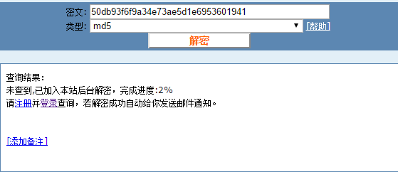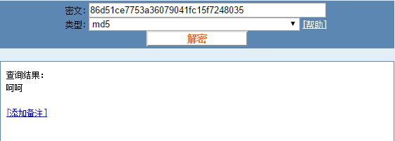 這就是加密過後的呵呵了,我們可以把這串密文拷貝到上面這個md5的在線解密網站: