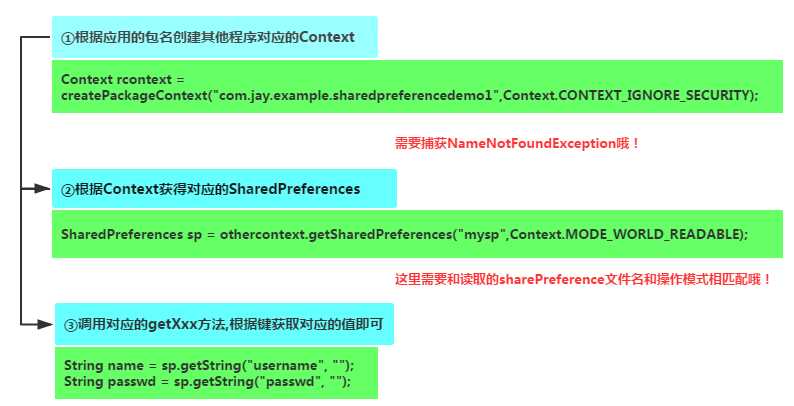 othercontext = createPackageContext("com.jay.sharedpreferencedemo", Context.CONTEXT_IGNORE_SECURITY);