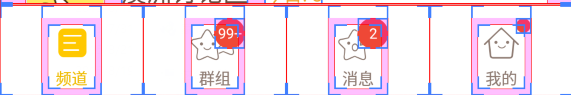 前面我們已經跟大家講解了實現底部導航欄的兩種方案,但是這兩種方案只適合普通的情況,如果 是像新浪微博那樣的,想在底部導航欄上的item帶有一個紅色的小點,然後加上一個消息數目這樣, 前面兩種方案就顯得無力了,我們來看看別人的APP是怎麼做的,打開手機的開發者選項,勾選裡面的: 顯示布局邊界,然後打開我們參考的那個App,可以看到底部導航欄是這樣的: