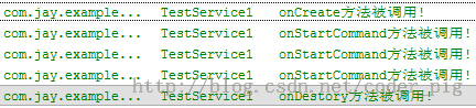 從上面的運行結果我們可以驗證我們生命周期圖中解釋的內容: 我們發現onBind()方法並沒有被調用,另外多次點擊啟動Service,只會重復地調用onStartCommand 方法!無論我們啟動多少次Service,一個stopService就會停止Service!