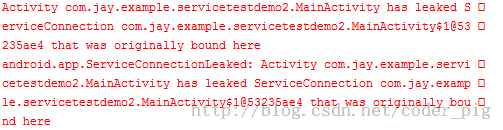 如果我們再綁定後直接關掉Activity的話會報錯, 然後會自動調用onUnbind和onDestory方法!