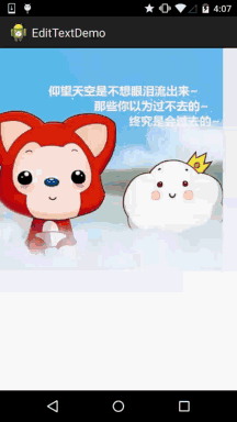 就是簡單的設置一個ImageView,然後setOnTouchListener,重寫onTouch方法即可!很簡單,其實這個在幀布局那一節已經有個例子了,還記得那個隨手指移動的萌妹子嗎?