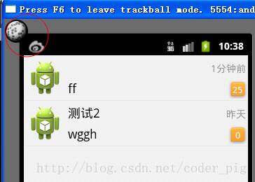 另外,這了解釋下什麼是軌跡球,不過用處不大,在以前黑莓的手機上可以看到;當我們浏覽網頁的的時候 ,可以把軌跡球看作鼠標,不過這樣的操作,我們用onTouchEvent就可以解決了,而且不夠美觀,所以現在 用的很好,基本不用,如果你有興趣想看看的話,可以在原始Android模擬器按f6就可以看到了!