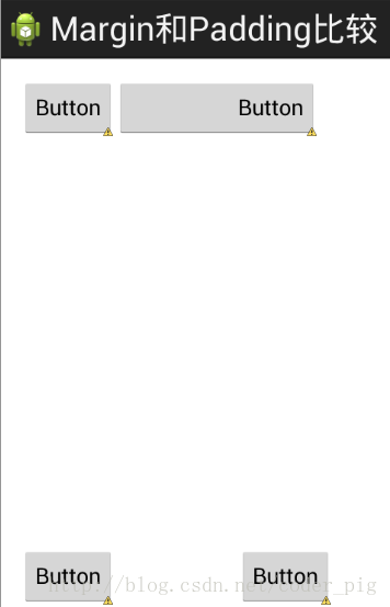 初學者對於這兩個屬性可能會有一點混淆,這裡區分下: 首先margin代表的是偏移,比如marginleft = "5dp"表示組件離容器左邊緣偏移5dp; 而padding代表的則是填充,而填充的對象針對的是組件中的元素,比如TextView中的文字 比如為TextView設置paddingleft = "5dp",則是在組件裡的元素的左邊填充5dp的空間! margin針對的是容器中的組件,而padding針對的是組件中的元素,要區分開來! 下面通過簡單的代碼演示兩者的區別: