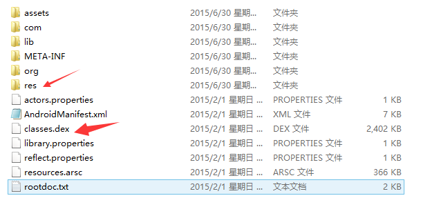 "反編譯Apk",看上去好像好像很高端的樣子,其實不然,就是通過某些反編譯軟件,對我們的APK進行反編譯,從而獲取程序的源代碼,圖片,XML資源等文件;不知道你有沒有這樣做過,看到一個別人的一個APP界面做得很精美,或者你看上別人的圖片素材,簡單點的,我們可以下載別人的APK,然後改下後綴名,改成xxx.zip,然後解壓: 筆者隨便解壓了一個APK:
