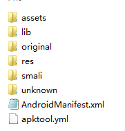 把下載好的apktool解壓後,我們可以看到下述文件(忽略那兩個csdn,一個是反編譯的apk,一個是反編譯後文件):