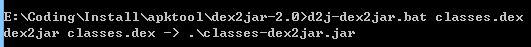 打開cmd,來到這個目錄下:鍵入:d2j-dex2jar.bat classes.dex