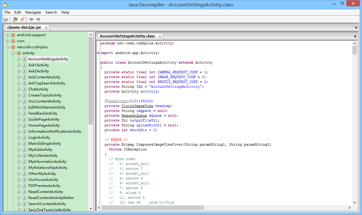 - dex2jar:將APK反編譯成Java源碼(將classes.dex轉化為jar文件)