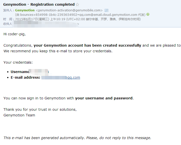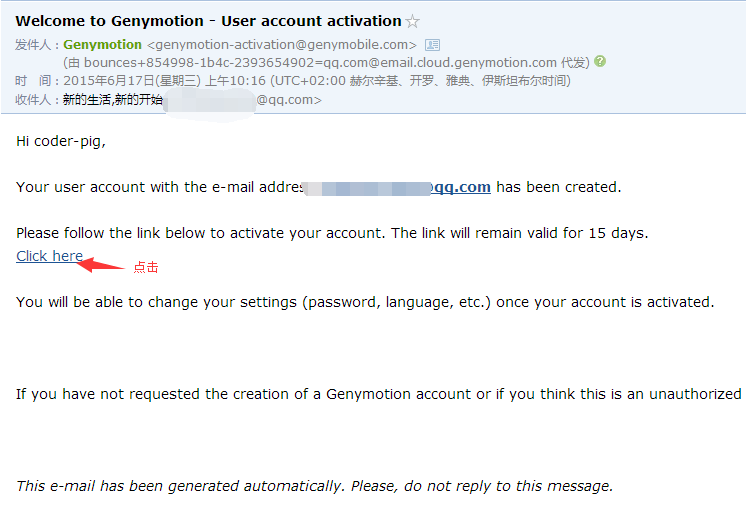 打開郵箱,點擊激活賬號,然後過一會兒會收到另一封創建成功的郵件
