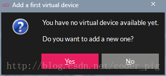 ①運行軟件後會來到一個界面,因為是第一次使用,所以需要我們新建一個avd: