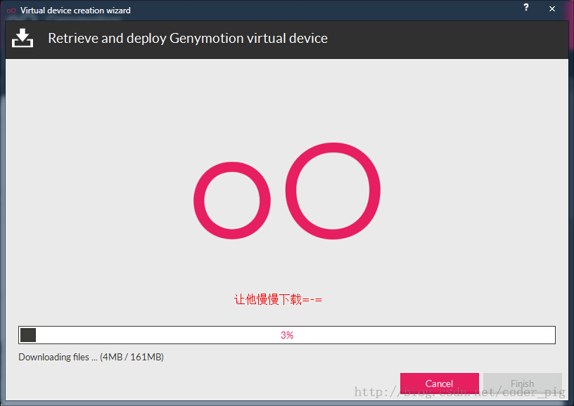 設置完名稱後,點擊next,就會下載虛擬設備的相關程序以及對應官方的sdk
