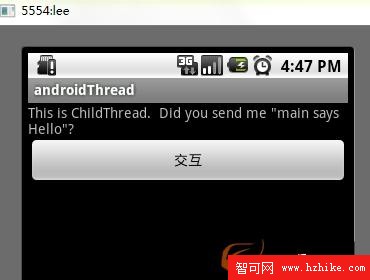 049 Log.i(TAG, "Send a message to the child thread - " + (String)childMsg.obj);