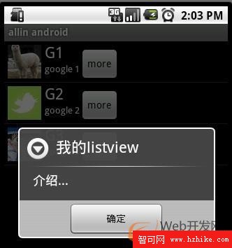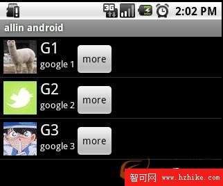系統顯示列表時,首先實例化一個適配器(這裡將實例化自定義的適配器)。當手動完成適配時,必須手動映射數據,這需要重寫getView()方法。系統在繪制列表的每一行的時候將調用此方法。getView()有三個參數,position表示將顯示的是第幾行,covertView是從布局文件中inflate來的布局。我們用LayoutInflater的方法將定義好的vlist2.xml文件提取成VIEw實例用來顯示。然後將XML文件中的各個組件實例化(簡單的findViewById()方法)。這樣便可以將數據對應到各個組件上了。但是按鈕為了響應點擊事件,需要為它添加點擊監聽器,這樣就能捕獲點擊事件。至此一個自定義的listView就完成了,現在讓我們回過頭從新審視這個過程。系統要繪制ListView了,他首先獲得要繪制的這個列表的長度,然後開始繪制第一行,怎麼繪制呢?調用getView()函數。在這個函數裡面首先獲得一個View(實際上是一個 ViewGroup),然後再實例並設置各個組件,顯示之。好了,繪制完這一行了。那 再繪制下一行,直到繪完為止。在實際的運行過程中會發現listView的每一行沒有焦點了,這是因為Button搶奪了listVIEw的焦點,只要布局文件中將Button設置為沒有焦點就OK了。