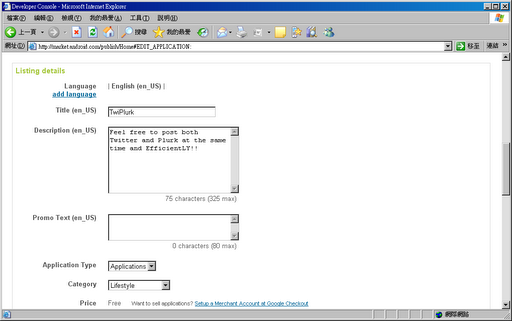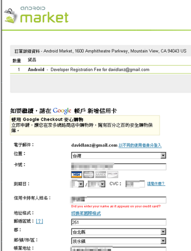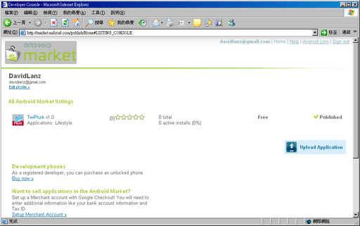 目前android的程序商店(android Market)還沒有向所有開發者開放,但是Google已經承諾android Market將向更多國家開發者開放,本文為一名台灣地區的開發者向android Market提交程序的圖解教程,對大陸的開發者將有一定的指導意義,希望大家喜歡。