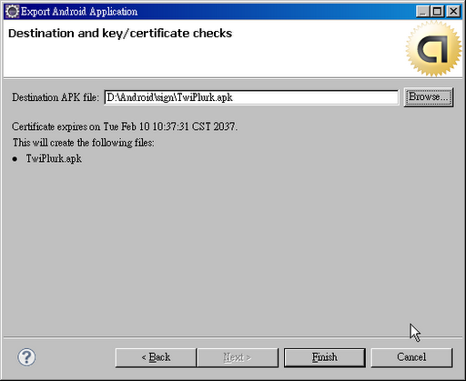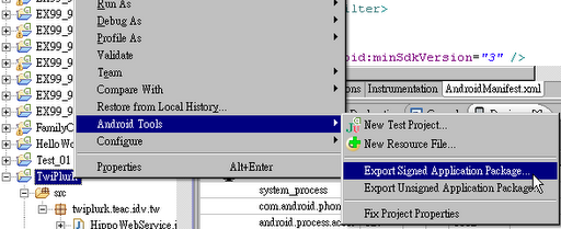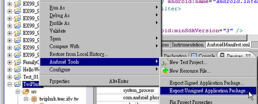 9.系統提示發布至market前必需簽署應用程序。