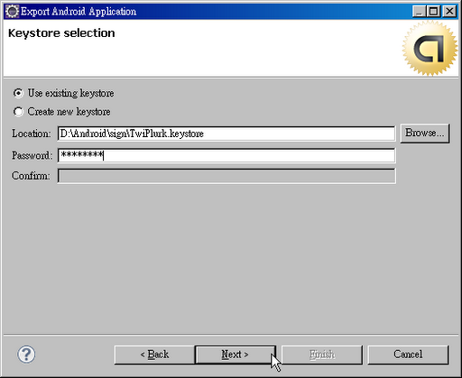 13.按下「Browse」選擇keystore