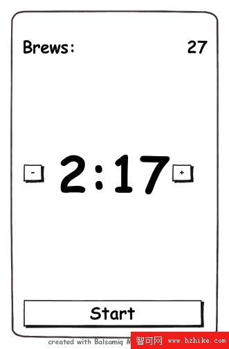 用戶將能通過+和-按鈕設置一個泡茶的定時器。當單擊開始按鈕,定時器將開始按指定的時間遞減。除非用戶再次點擊按鈕以取消計時,否則當定時器為0的時候,累計的泡茶計數brew將增加1。