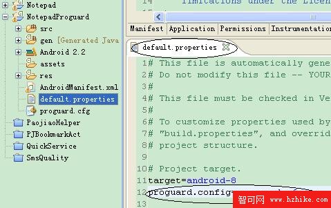 2.使用SDK2.3後,新建的工程下和之前相比,都會多了一個文件“proguard.cfg”。一打開,相當驚喜,這就是混淆所需的proguard腳本啊。