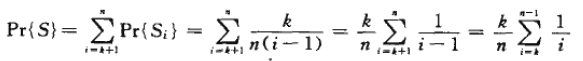 Pr{Bi}的概率顯然是1/n,因為最大值等可能地是n個位置中的任何一個。如果事件Oi要發生,在位置1到i-1中的最大值必須在前k個位置的一個,而且最大值等可能地是i-1個位置中的任何一個。因此,Pr{Oi}=k/(i-1),Pr{Si}=k/(n(i-1))。利用公式2有