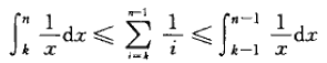 我們利用積分來近似約束這個和數的上界和下界。根據不等式公式3,有