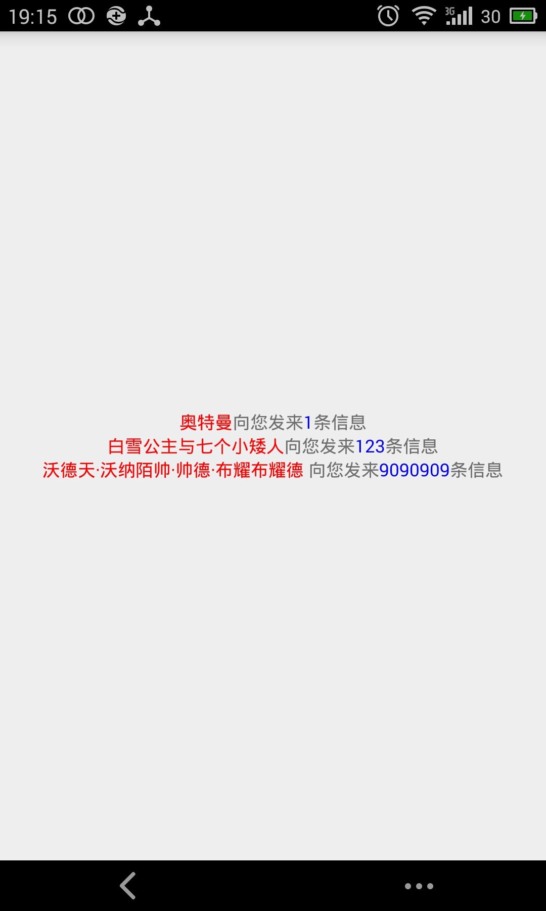 TextView顯示一段文字,格式為:白雪公主(姓名,字數不確定)向您發來了2(消息個數,不確定)條消息