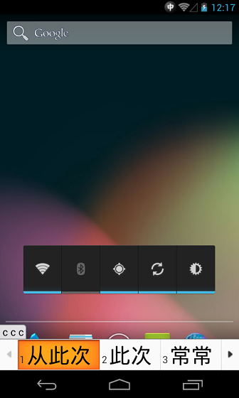 6.使用的過程中發現還是有一些bug的,比如中文輸入法問題,打開系統自帶了谷歌拼音輸入法,只要在屏幕上滑動就會自動啟動輸入法,不斷的輸出"c",截圖如下: