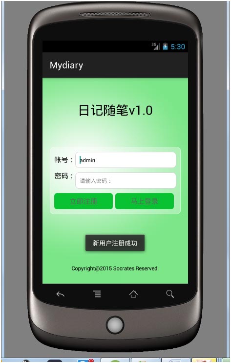 7 Toast.makeText(getApplicationContext(), "新用戶注冊成功!",Toast.LENGTH_LONG).show(); //給出客戶提示