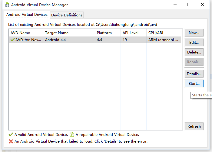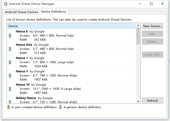 2. 選中其中一種設備,然後點擊創建 AVD。