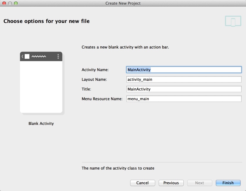 這個頁面選擇一個Activity模板,和Eclipse很像,我們直接選擇一個Blank Activity好了