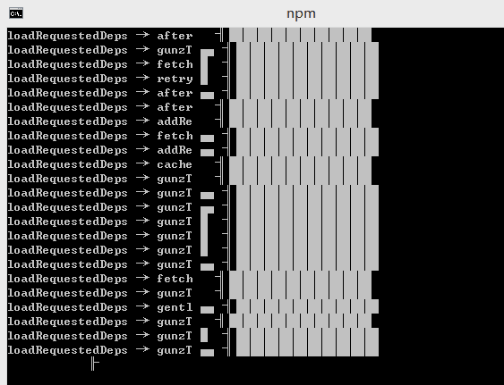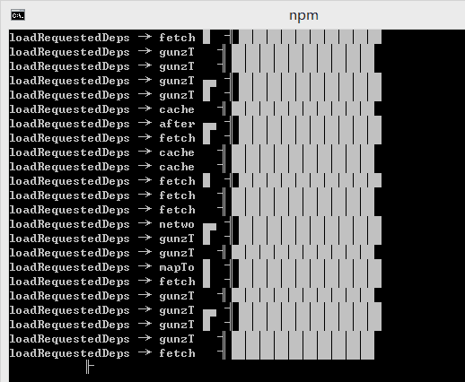 輸入npm install -g cordova ionic 後一段時間一直卡在下面圖所示位置循環,安裝不成功。