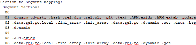 一個段 (segment) 由一個或多個節 (section) 組成,但這對 android linker 是透明的,linker 在加載程序時沒有用到節信息。所以對於一個 so 文件,修改 ELF Header 中和節有關的成員 (e_shoff、e_shentsize、e_shnum) 不會影響程序運行。