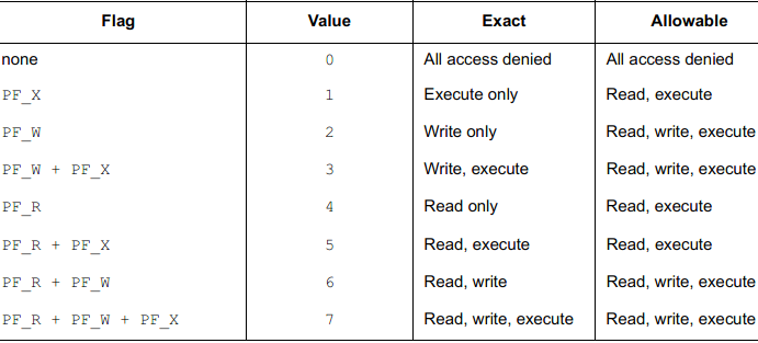 一個可被系統加載的程序至少擁有一個可加載段。當系統創建可加載段的內存映像時,會根據 p_flags 賦予一定的訪問權限。
