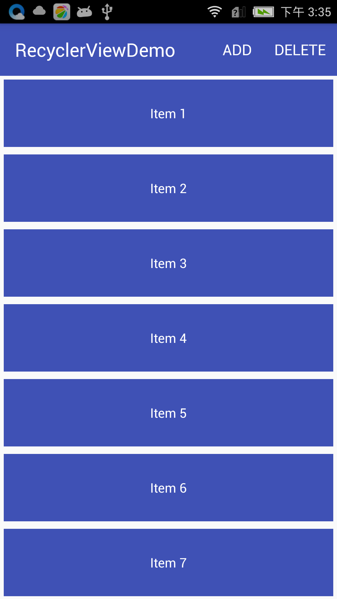 之所以設置一個4dp的margin是因為RecyclerView並沒有為我們提供一個想listview那樣的設置分割線的屬性,所以可以在item中設置一個margin,當然你其實可以通過RecyclerView的addItemDecoration方法去自定義一個分割線。