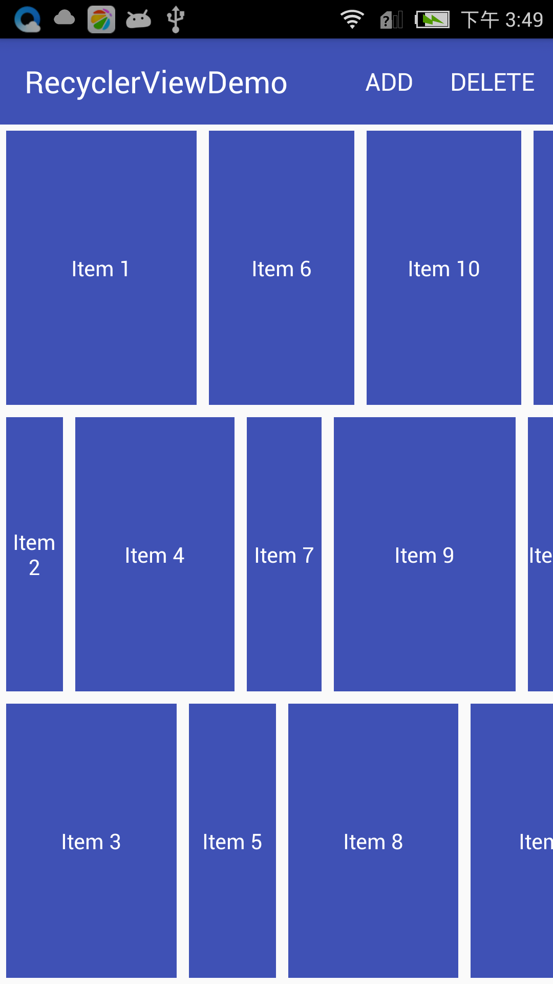 3.StaggeredGridLayoutManager 瀑布就式布局管理器
