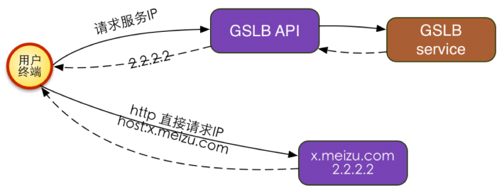但是也存在問題,這種方案僅適應於有客戶端的Http、Https請求,不適合浏覽器訪問,浏覽器不清楚你的GSLB是什麼東西。用戶同步的API訪問可以用GSLB來做,但是Web訪問的時候,是不能用GSLB來做流量調度的,因為浏覽器不認GSLB, 如果使用智能DNS也無法根據用戶ID精准調度流量。
