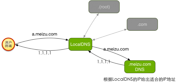只能DNS根據LocalDNS來的請求裡的IP來判定您是哪個那個ISP,哪個區域的用戶,從而調度到對應ISP,對應區域的機房,核心在智能DNS的IP庫。有幾個缺點: